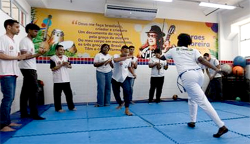 Estudantes participam da aula de capoeira na sala de lutas do colégio Pedro Paulo Marques e Marques - Foto: Instituto Natura |