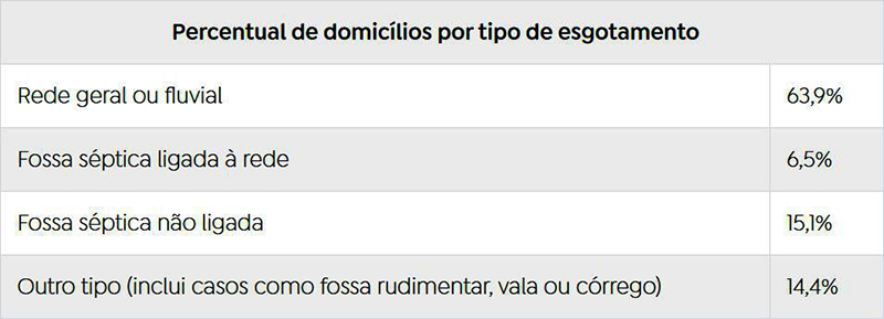 Os dados do IBGE apontam as características dos esgotamentos, mas não se debruçam sobre o fato de os resíduos terem ou não tratamento.