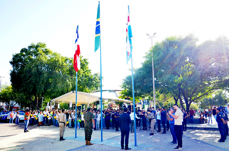 Com o tema “Brasilidade”, escolhido para nortear as atividades deste ano, a Semana da Pátria destaca a importância dos símbolos nacionais e do sentimento de pertencimento à cultura brasileira. O evento contou com a presença do vice-prefeito Túlio Viana, que representou o prefeito Otoniel Teixeira, além do secretário municipal de Educação, Jeferson Barbosa, do secretário de Segurança Cidadã e Trânsito, tenente-coronel Fábio Santana, do reitor da Uninassau, representantes do Corpo de Bombeiros Militar, Polícia Civil, Guarda Civil Municipal e dos vereadores Adriano Stein e B.I. Ayres,