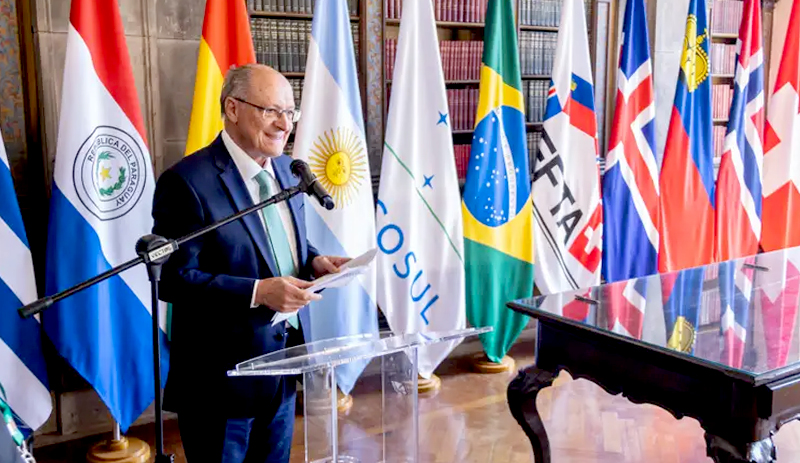 Geraldo Alckmin diz na assinatura do Acordo de Livre Comércio Mercosul-Efta que acordo está dando uma prova de que é possível fortalecer o multilateralismo e o livre comércio - Foto: Júlio César Silva/MDIC |