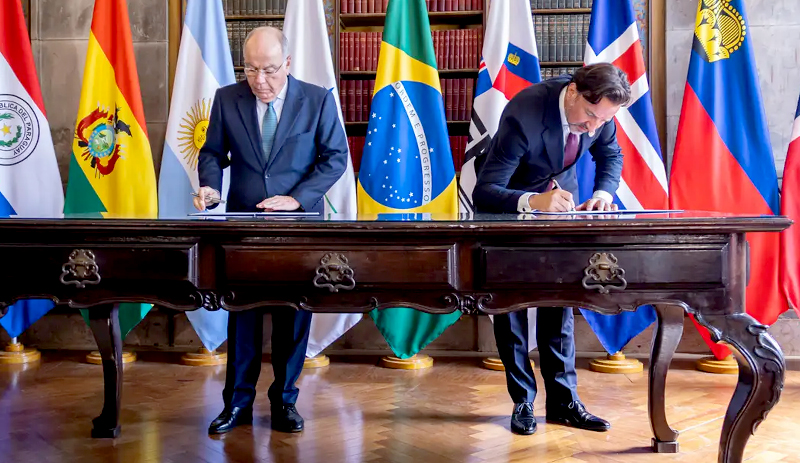 A cerimônia de assinatura do acordo Mercosul-Efta foi no Palácio Itamaraty, no Rio de Janeiro. Atualmente, o Brasil é o presidente pro tempore do grupo, que reúne como estados partes a Argentina, Uruguai, Paraguai, Bolívia e Venezuela (atualmente suspensa) e como estados associados Chile, Colômbia, Equador, Guiana, Panamá, Peru e Suriname.