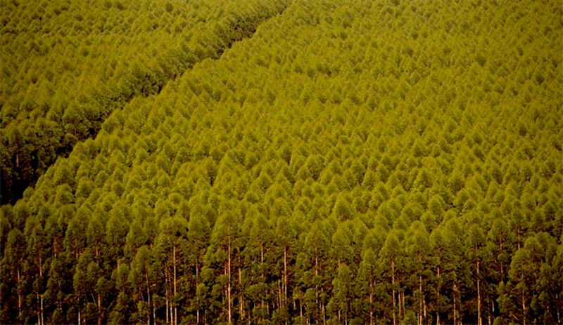 O eucalipto é a madeira utilizada em praticamente toda obtenção de carvão vegetal (98,4%), 86,9% da lenha e 87,4% para papel e celulose.