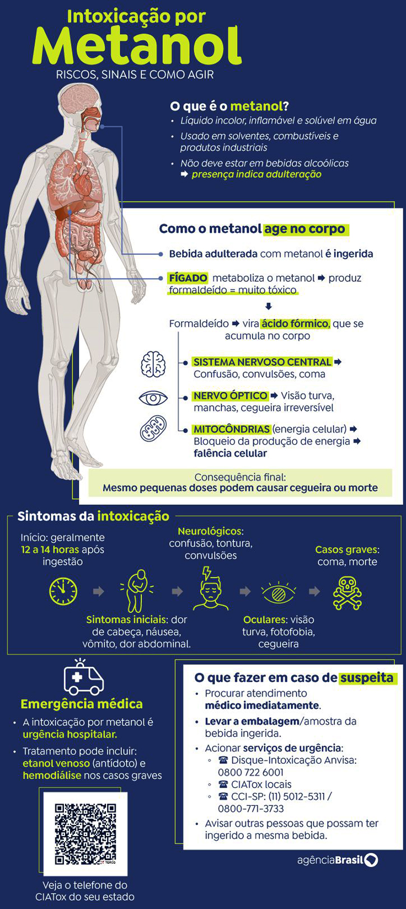 Dessas 59, 11 já tem a detecção laboratorial da presença do metanol por um Centro de Informações Estratégicas e Resposta de Vigilância em Saúde (Cievs). Há ainda um 12º caso, do rapper Hungria, em que a presença do metanol foi detectada em exame feito no hospital onde o paciente está internado, em Brasília.