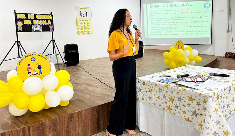 Na manhã de ontem, quarta-feira (1º) a Escola Municipal Mirandolina Ribeiro Macêdo recebeu o lançamento do projeto “Na Minha Escola Não Tem Bullying”, uma iniciativa permanente da Secretaria de Educação, por meio da equipe multiprofissional do CEFAEE. A proposta surgiu a partir da crescente demanda de atendimentos envolvendo situações de bullying que, em muitos casos, têm resultado em mutilações e até tentativas de suicídio entre crianças e adolescentes.