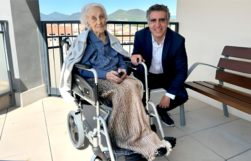 Maria Branyas Morera, à esquerda, com Manel Esteller, que participou dos estudos sobre o DNA da supercentenária © Divulgação/Josep Carreras Leukaemia Research Institute