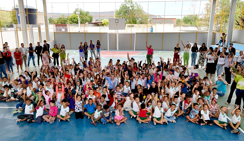 A comunidade escolar do Conjunto Habitacional Rio Grande celebrou, nesta quarta-feira (22), a entrega da obra de cobertura e requalificação da quadra poliesportiva, assim como o calçamento e jardinagem do pátio da Escola Municipal Paulo Freire. O novo espaço foi oficialmente inaugurado em uma solenidade que reuniu o prefeito Otoniel Teixeira, o secretário de Educação, Jeferson Barbosa, o ex-prefeito de Barreiras, Zito Barbosa, a diretora da unidade escolar, Alessandra Santos, além dos vereadores Zé do Sorvete, Tatico Rocha, Valdimiro José, Thaislane Sabel, Dicíola Baqueiro e Delma Pedra. Servidores da educação, secretários e subsecretários municipais também prestigiaram o momento.