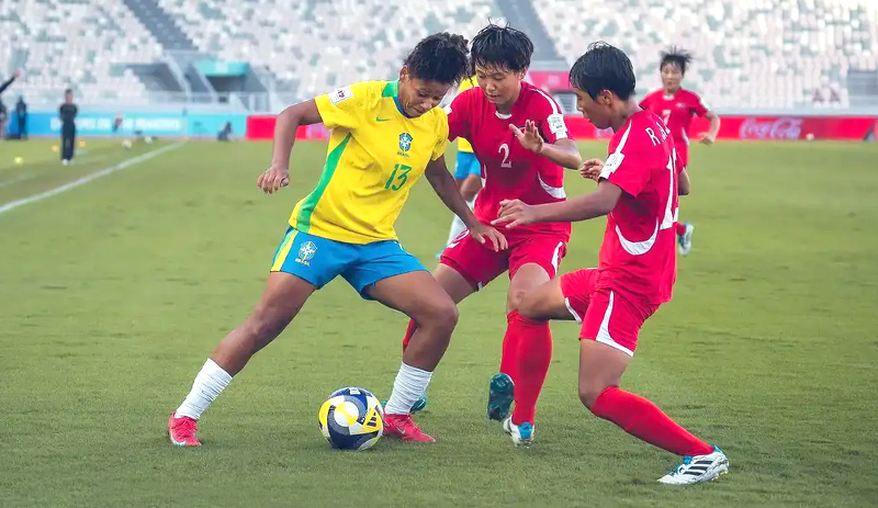 Não foi desta vez. A seleção brasileira feminina Sub-17 foi superada por 2 a 0 pela favorita Coreia do Norte nas semifinais do Mundial da categoria, em Rabat (Marrocos) e adiou o sonho do título inédito na competição. Yu Jong Hyang marcou duas vezes para as asiáticas, maiores campeãs mundiais na categoria (elas somam três títulos). As norte-coreanas seguem na luta pelo tetracampeonato. Já as brasileiras, que pela primeira vez na história avançaram à semi Mundial, voltarão a campo no sábado (8) para brigar pelo terceiro lugar. A partida será às 12h30 (horário de Brasília) no Estádio Príncipe Moulay Abdellah, em Rabat. Na sequência, ocorrerá a decisão do título.