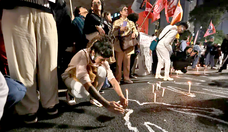 Pessoas na Avenida Paulista durante manifestação contra a operação