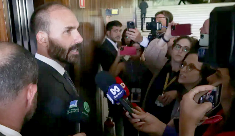 Em setembro, o filho do ex-presidente Jair Bolsonaro foi denunciado pela Procuradoria-Geral da República (PGR) no inquérito que apurou a atuação do parlamentar junto às autoridades estadunidenses para fazer pressão sobre julgamento que condenou seu pai por tentativa de golpe de Estado. Nos últimos meses, o governo de Donald Trump aplicou sanções como o tarifaço contra as exportações brasileiras, a suspensão de vistos de ministros do governo federal e ministros do STF e sanções financeiras contra o ministro Alexandre de Moraes.