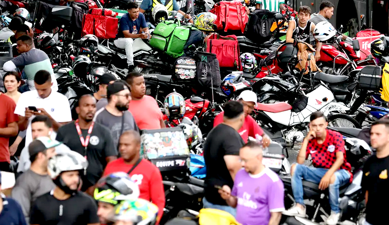 Entregadores de aplicativos de delivery em greve © Paulo Pinto/Agência Brasil