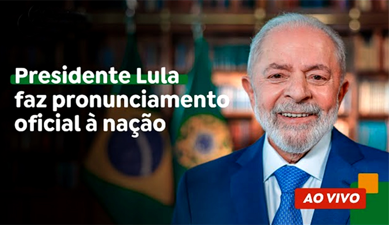 O presidente Luiz Inácio Lula da Silva gravou um pronunciamento, em cadeia nacional de rádio e televisão, que será veiculado na noite deste domingo (30), às 20h30. Com cerca de 6 minutos de duração, a declaração terá como destaque a