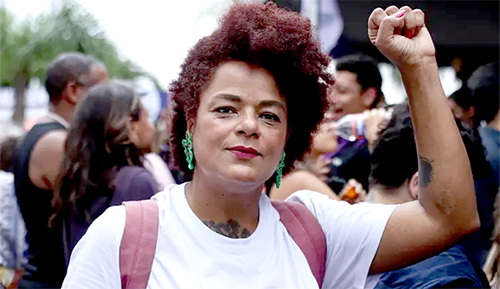 A rimadora Elisandra “Lis” Martins, de 31 anos, faz parte do coletivo Batalha das Gurias, da Frente Nacional de Mulheres no Hip-Hop, e compareceu ao ato para denunciar a violência de gênero na esperança de provocar uma reação do Estado.