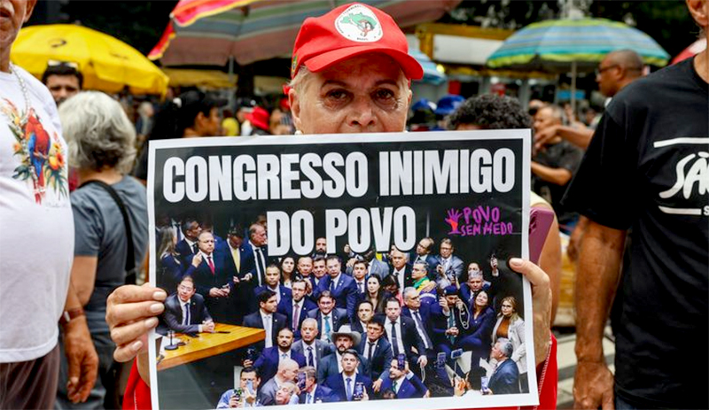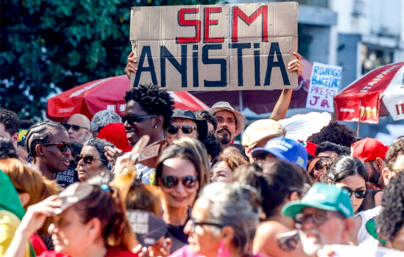 “A convocação desse ato foi motivada pela votação que aconteceu na Câmara dos Deputados essa semana do PL da Dosimetria. Nós entendemos que é uma anistia e que os crimes que foram cometidos contra a democracia são muito graves e não podem ser perdoados, até porque a impunidade faz com que venham outras tentativas de golpe depois”, disse Juliana Donato, da Frente Povo Sem Medo. Ela avalia que a pressão popular nas ruas é um movimento que pode, sim, levar à derrota do PL na votação que ainda ocorrerá no Senado.