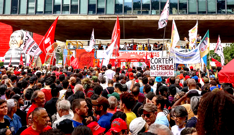 Glauber Braga este na manifestação e aproveitou para agradecer ao apoio popular. Ele disse que, com a suspensão de seus mandato, por seis meses, determinado pelo Congresso Nacional, "transferirá o gabinete para as ruas", onde continua a mobilização contra o PL da Dosimetria e contra as chamadas emendas PIX. Essa modalidade permite o repasse de recursos públicos sem explicar como será o gasto.