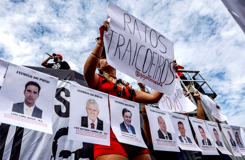 Manifestantes protestar contra o Congresso Nacional por causa da aprovação