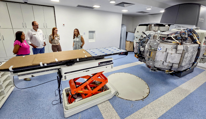 Outro destaque da vistoria foi o acelerador linear, que se encontra na fase final de implantação. De acordo com a secretária Roberta Santana, o equipamento já está instalado e aguarda apenas a etapa de certificação, prevista para o fim de janeiro de 2026. A expectativa é que o serviço de radioterapia comece a ser ofertado no final de fevereiro. “Esse é um compromisso muito importante, porque a nossa população não vai mais precisar se deslocar para Salvador para realizar radioterapia. Hoje, muitas pessoas passam de 30 a 45 dias fora de casa para realizar esse tratamento”, ressaltou.