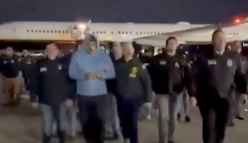 Maduro sendo levado pelos policiais sequestraores americanos © Frame vídeo/Canal UOL |