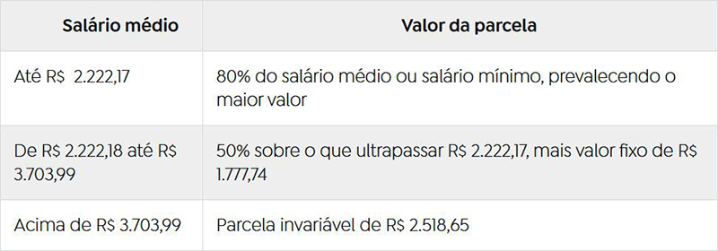 A parcela do seguro-desemprego é calculada com base na média das três últimas remunerações do trabalhador antes da demissão. Após a correção das faixas salariais, o benefício será definido da seguinte forma: