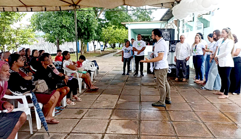 Nesta quinta-feira (22), foi promovida uma ação intersetorial no Centro de Especialidades Leonídia Ayres de Almeida, no bairro Morada Nobre. Os pacientes, previamente agendados, foram recepcionados pelo coordenador da unidade, Alessandro Menezes, acompanhado da subsecretária de Saúde, Érica Lacerda, da coordenadora de Saúde Mental, Denny Samper, e da equipe do Consultório na Rua. Foram oferecidos atendimentos e orientações nas áreas de psicologia, psiquiatria, médica, odontologia, nutrição, ultrassonografia e orientações psicossociais. A Defensoria Pública participou com orientações jurídicas voltadas às ações em saúde.